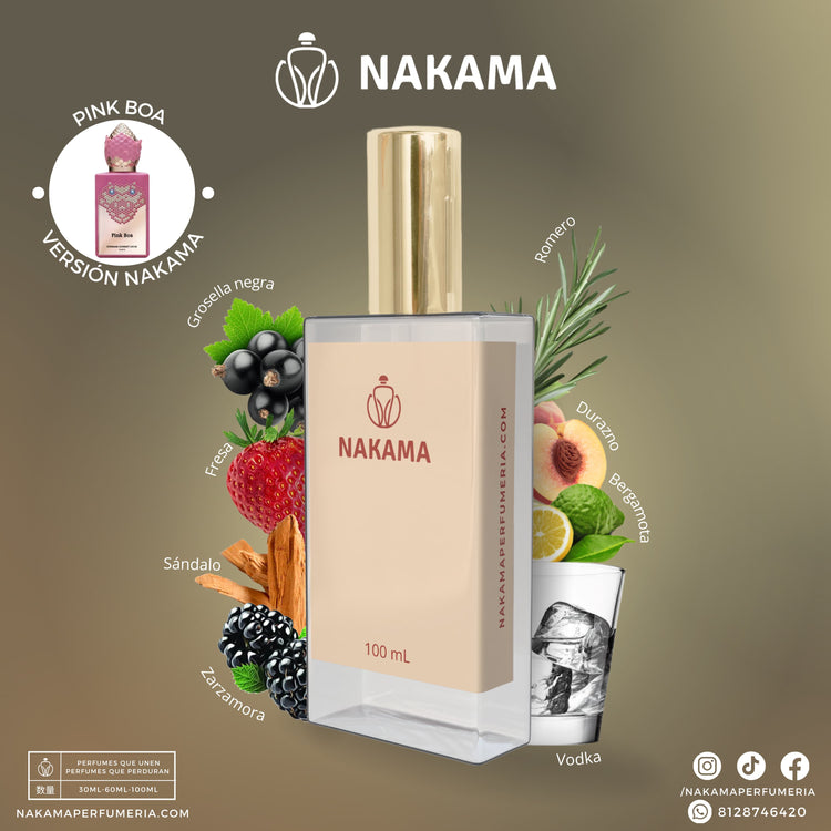 Las fragancias que compras en Nakama Perfumería comparten la misma familia olfativa de perfumes conocidos comercialmente estos se pueden mencionar de manera informativa debido a que sus notas se ubican en la misma familia olfativa dentro de las genealogías mundiales de perfumería. Este documento sólo tiene fines informativos de comparación para el público consumidor en los términos establecidos por el artículo 32 de la Ley Federal de Protección al Consumidor, sin perjuicio de lo establecido por el Artículo 173 fracciones X y XV
